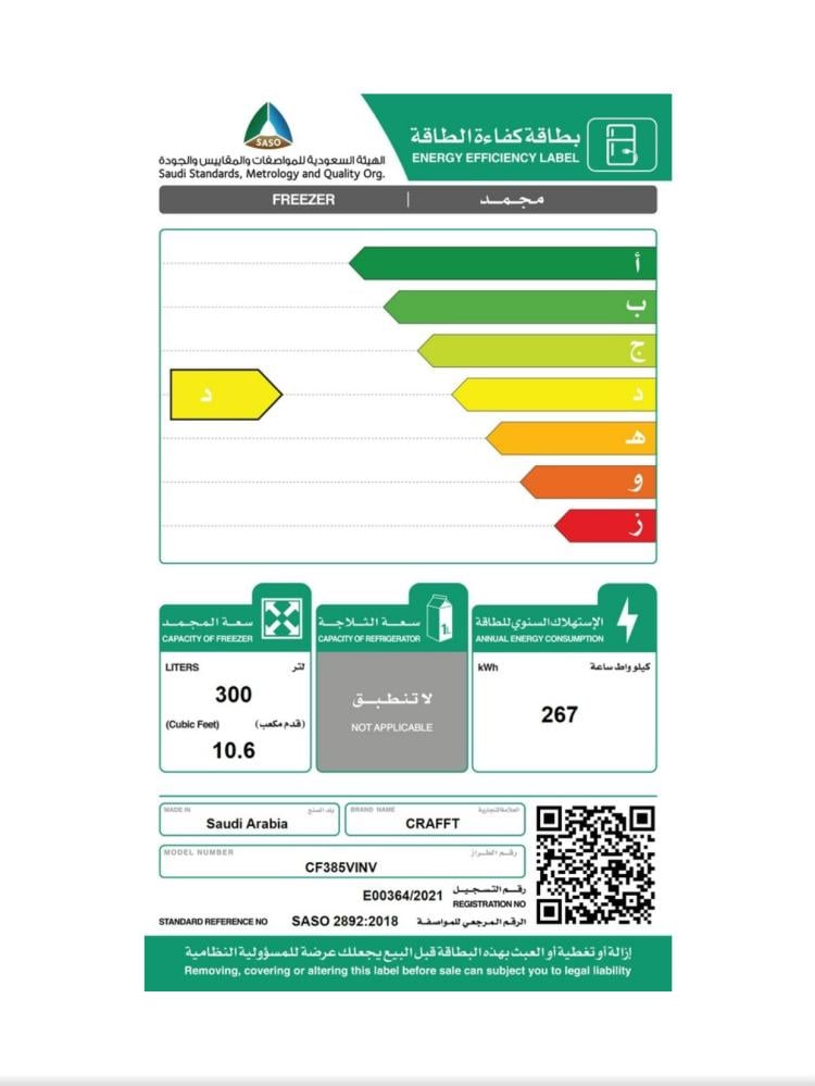 فريزر مسطح كرفت 300 لتر ابيض (انفرتر) وطني CF385VINV
